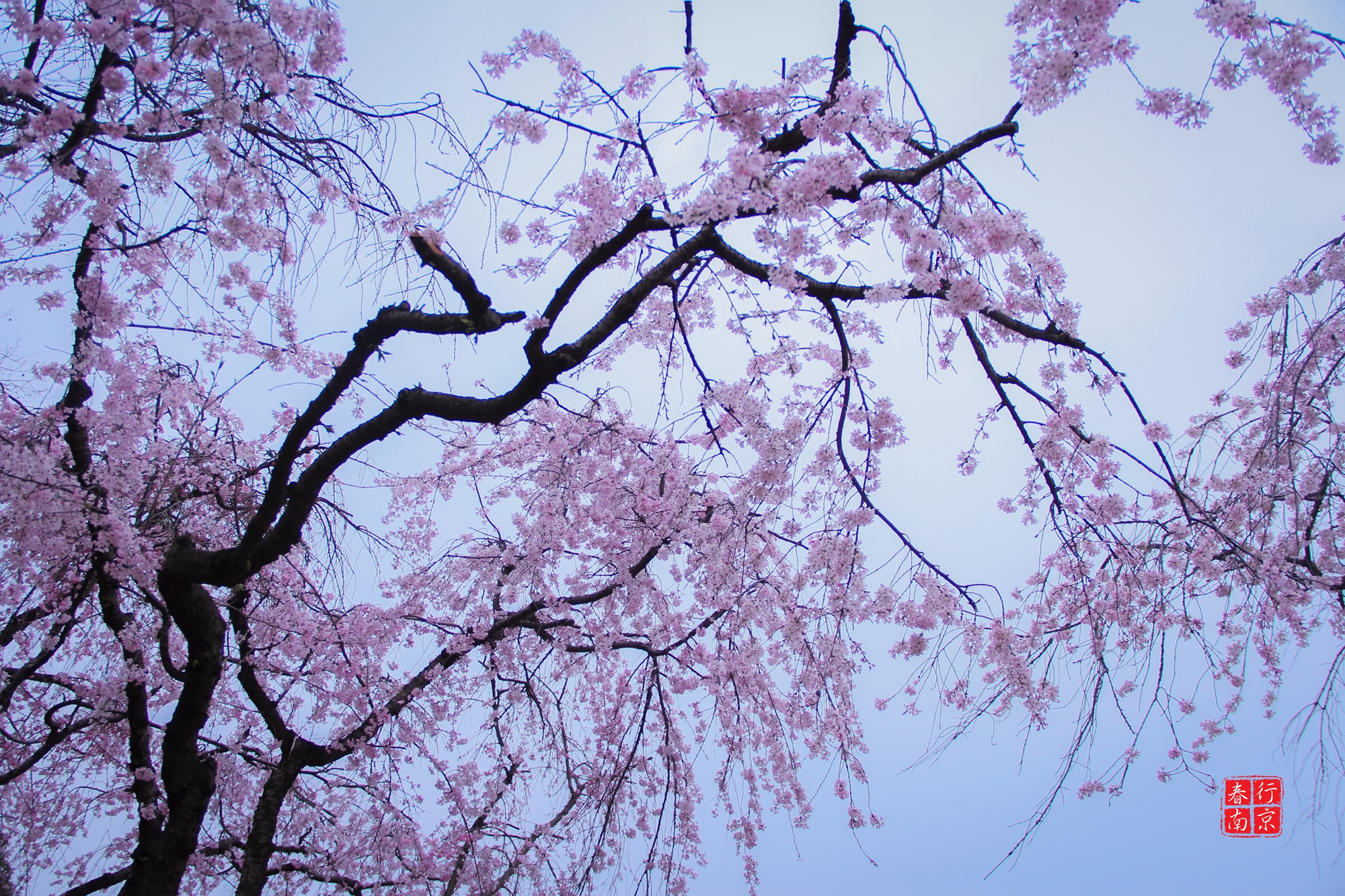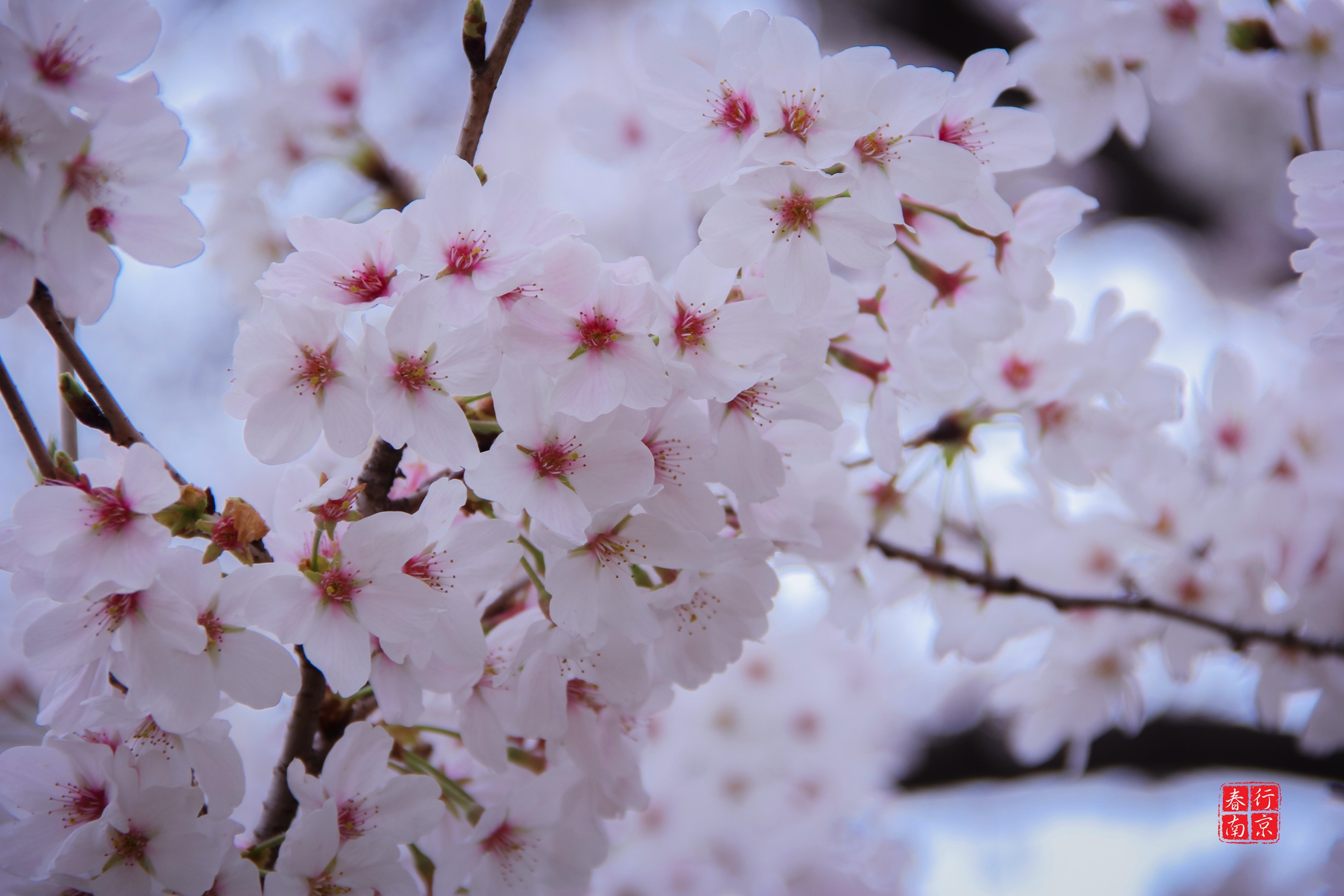从城墙上向下看,便能看到那蔓延一路的樱花道,在稍显萧条的初春自顾自的绽放。