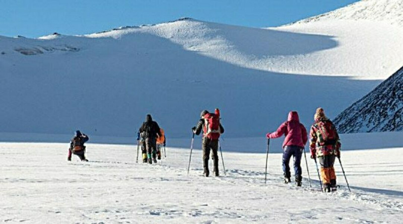 常年的高山积雪,下面的小湖就是积雪融化后的产物,山下的野花为这座高山点缀了无限的美好,永远是那么高大神圣!