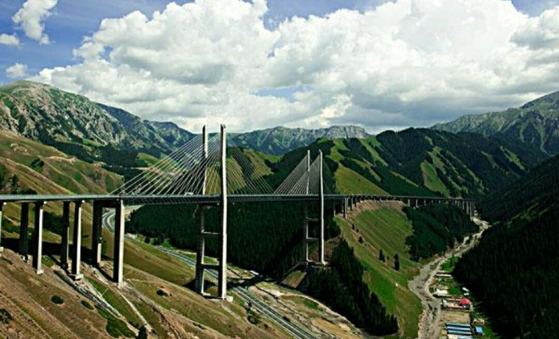 建在大山之间的果子沟大桥。我恨不得把车停下来,慢慢欣赏面前的高山白云美景!都说新疆的美景在路上。真是不往此行。