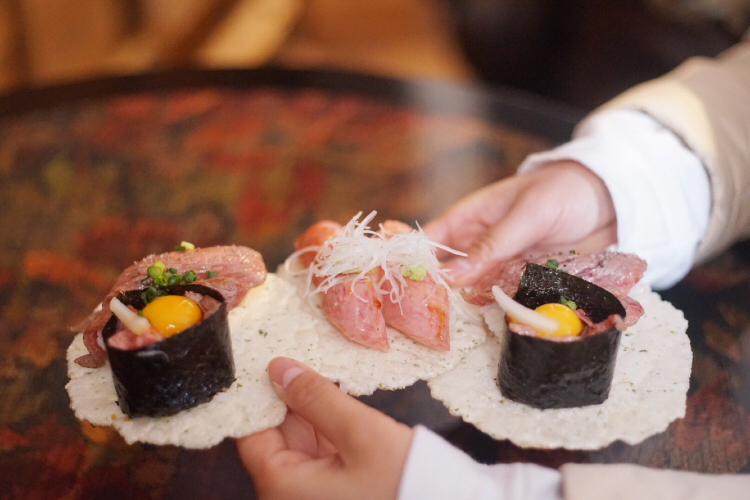 按照不同的口味和牛肉部位分为四种握寿司组合,