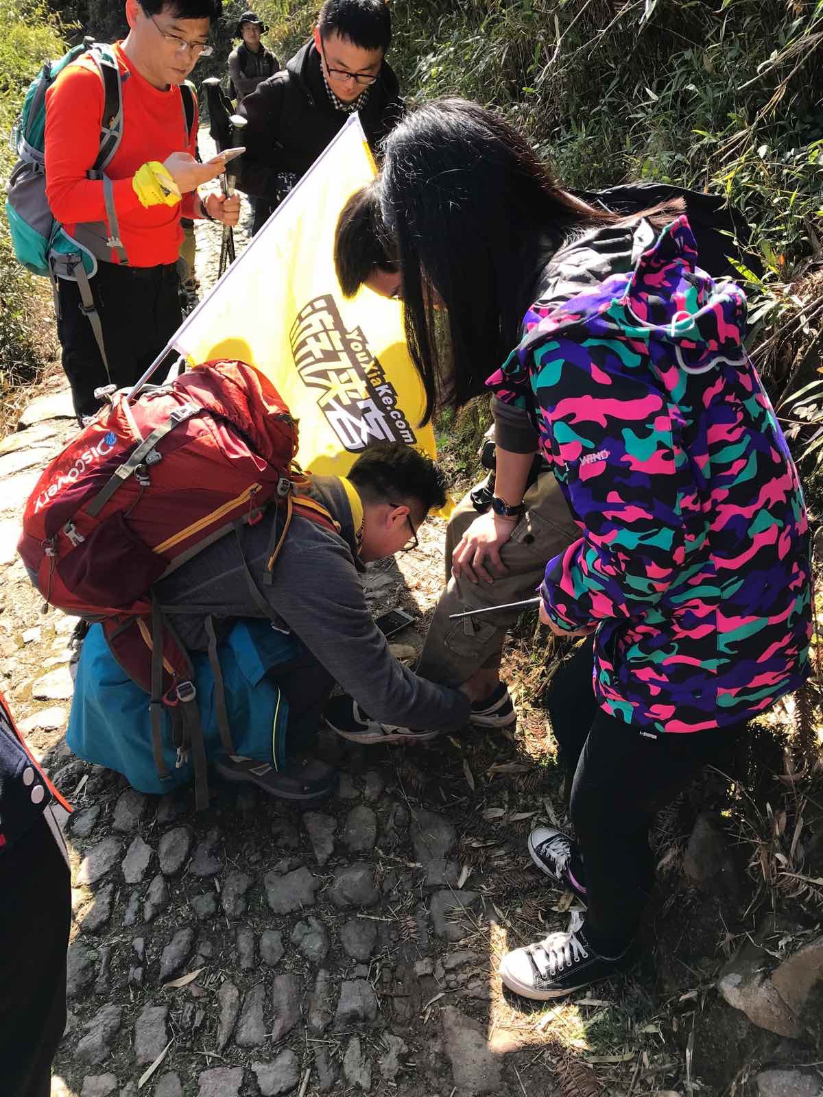 tips:脚是第一生产力,在徒步过程中,事前一定要热身,并提醒队员走路小心,特别是在光滑的青石板路、碎石路上。如果遇到受伤情况,就应先停下稍事休息,也可以用医药包里的云南白药等外药处理。如果伤情严重,看具体情况,是否可以继续行走,是否可及时联系司机师傅,送伤者上车,防止伤情加重。(ps:听吉仔说,他曾在雪山上把人给背下来,厉害了,我还记得我曾经5点钟背着登山包想从雪乡穿越雪谷,但是可惜没穿越成功,路线错误,又回到了雪乡,那一刻,我内心是崩溃的~~~~)