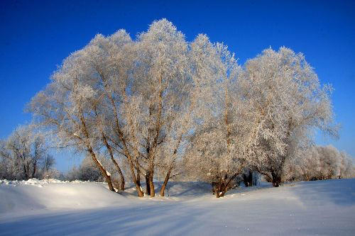 绵延数公里的雾凇景观