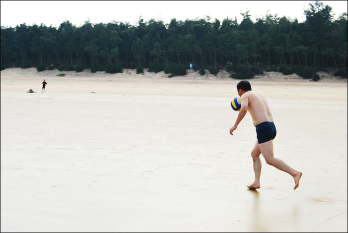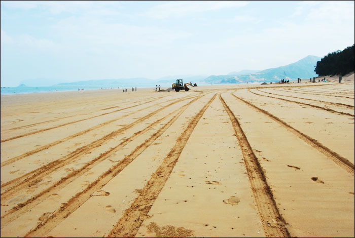 大京沙滩,名不虚传,平滩,宽阔,就像一个体育场,还能车来车往... ...