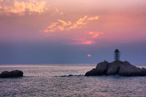 坐上青浜岛与东福山之间的接驳船,到了东福山已是下午1点,在大名鼎鼎的云雾山庄落脚,安顿好,吃饱,睡上一觉,准备傍晚起来看日落...旅途的劳累令我在东福山徐徐的海风下很快便遁入梦境,一觉醒来已近黄昏,我赶忙箭步流行奔向山顶,余晖下的海礁在海浪的拍打下大气磅礴,此情此景令人动容。