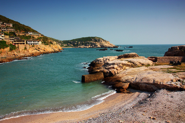 沿着青浜岛的石板路上山,沿路走过岛上的民居,可以找到一片海滩,估计是东极为数不多的原始海滩,人烟稀少,沙石颠簸,但是海景无敌了