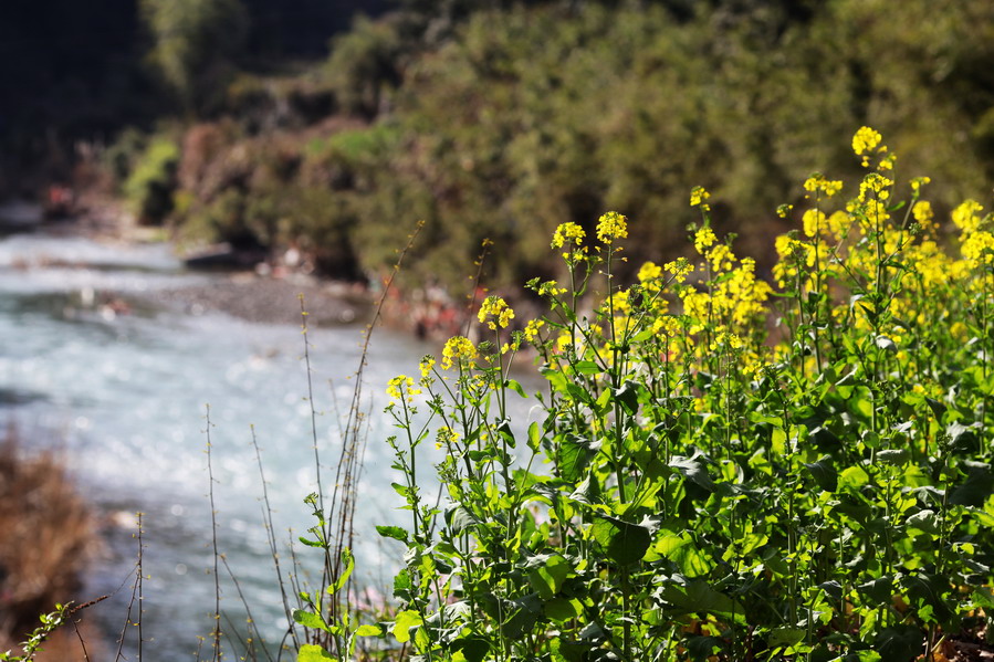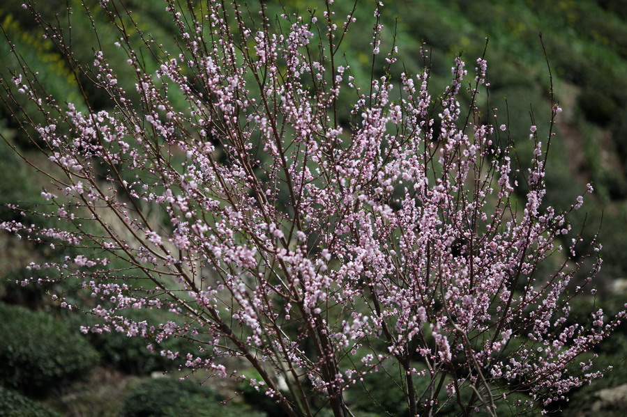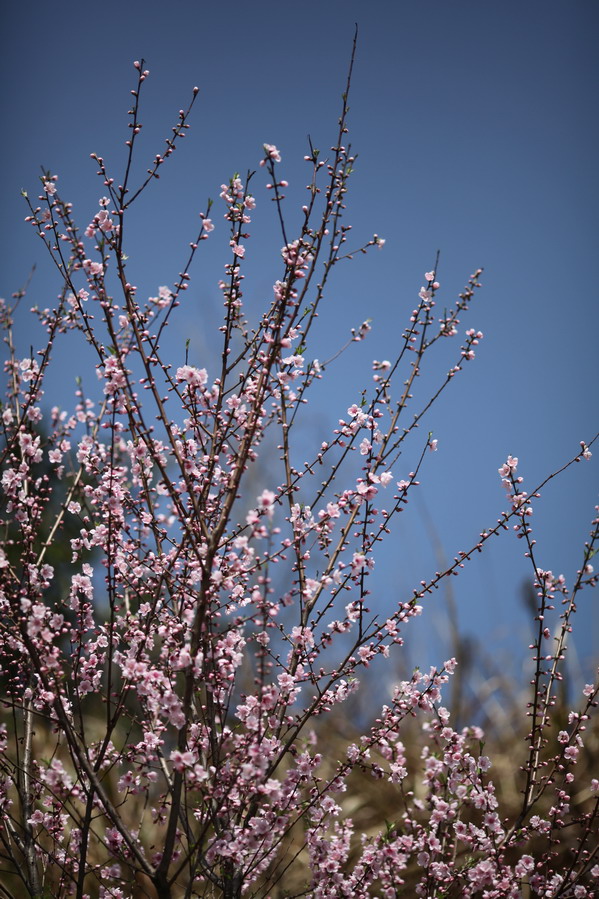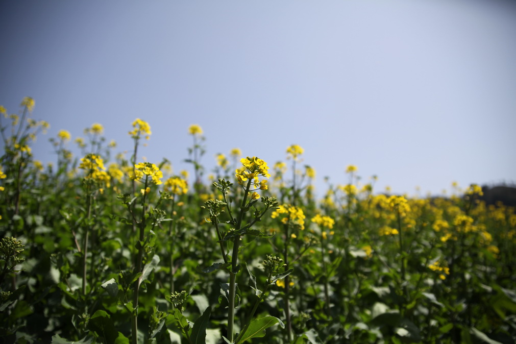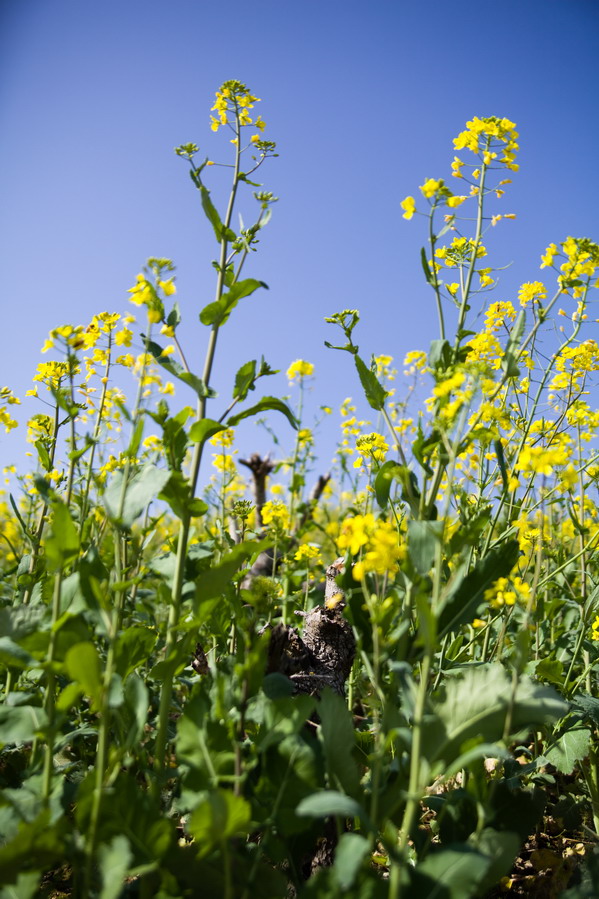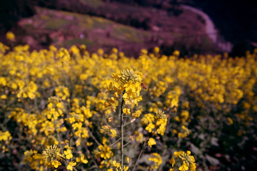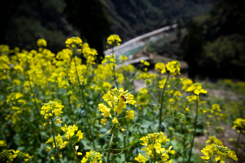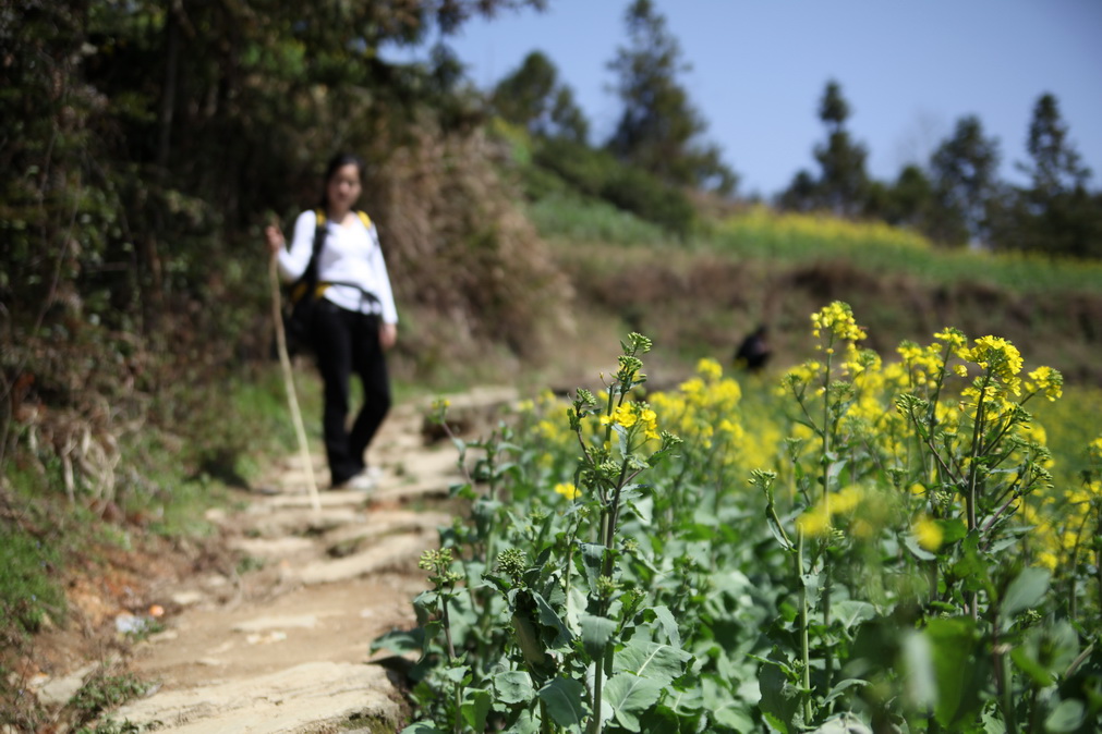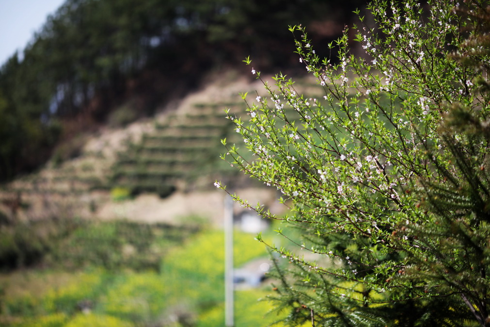 天气这么好,不能便宜了小油菜籽,路边的桃花也争相开了起来,
