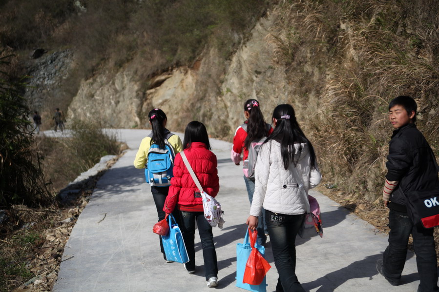 下山路上碰到了放学回家的小朋友、、、、、这位小dd眼神好像在说姐姐你好像外星人啊~~