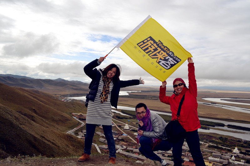 这郎木寺以镇河为界占据四川甘肃两省,我们去了在甘肃的一部分,中间这位藏族的小姑娘,她的名字不太记得清了,只记得我们都喊她小草。她超出了工作范围带我们来回徒步4公里去看了神圣的天葬台。扎西得嘞。。。祝福你!