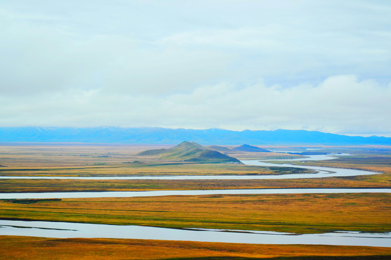 震撼的黄河九曲第一湾。金黄的草原,缓缓流淌的黄河水。