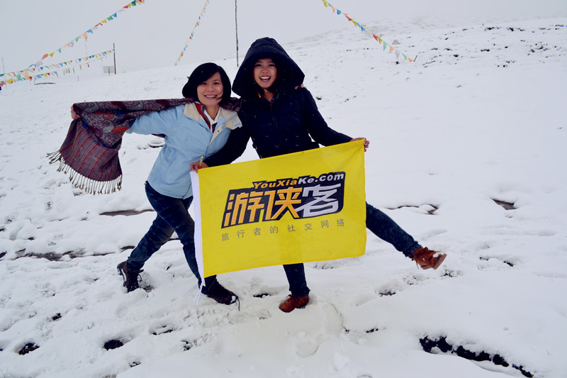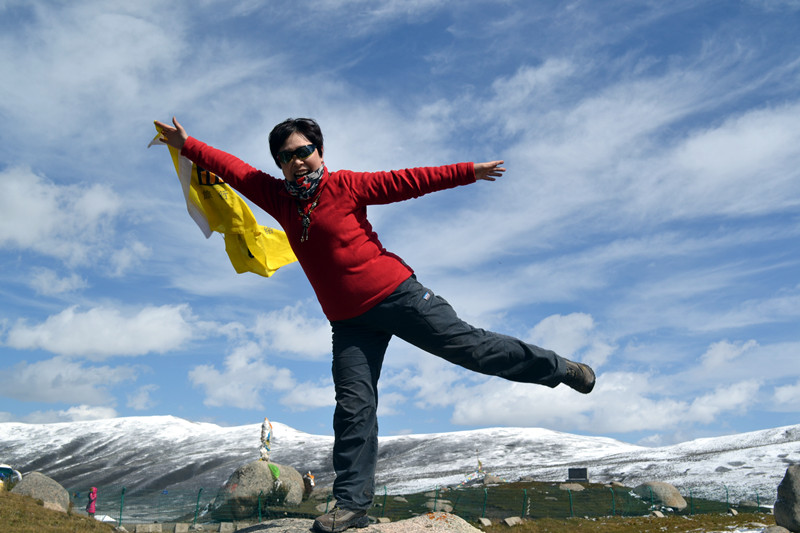 我们身后就是年保玉则神山。我们所在地方叫乱石岗垭口,海拔,4207.。。特此留念。