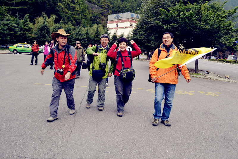 爬着上黄龙的5位英雄。还有一个上厕所去了。双胞胎之一。