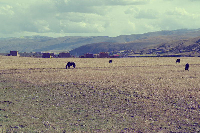 马儿在吃草,阿妈在烧饭,夕阳在渲染整个天空。我们在回巢。