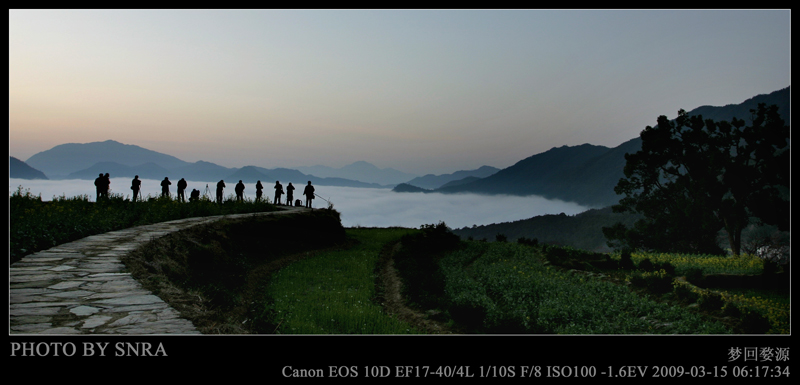 不过也是有收获的,此次婺源之行结识了揽色景边、么么茶、凤凰等志同道合的摄友,周六晚上通过争取,在晚饭后得以连夜赶到江岭,并幸运地住在了山顶的农家客栈。在那里我们度过了一个快乐的夜晚和难忘的清晨。