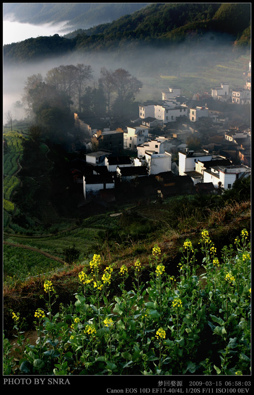 3.14-15二天的婺源之行总的来说是不错的, 但也有三点小小的遗憾:一是行程安排不够理想,由于花期推迟,第一批的摄影组人很少,第一天同休闲组并到了一起,感觉不够痛快!二是油菜花没有到盛开期,特别是江岭的花开的很少,没有拍到漫山遍野的灿烂景像。三是天气太过晴朗,没有欣赏到古徽州在烟雨蒙蒙中特有的婉约、空灵之美。