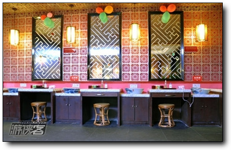 沿左手边的入口楼梯上到二楼,女宾部就在楼梯口,男宾部则需右转在另一边。根据以往经验,大部分温泉的更衣室都会出现人多柜少,十分拥挤、乱七八糟的情况。但醉温泉更衣室之宽敞确实出乎大家的意料哦。进门后先为左右两排化妆台,五彩的玻璃灯装饰得像童话世界一样。往里为大量的更衣柜,十分整齐。七转八弯中,发现沐浴室也很宽敞,即有冲淋房,也有坐浴台,功能很齐全。