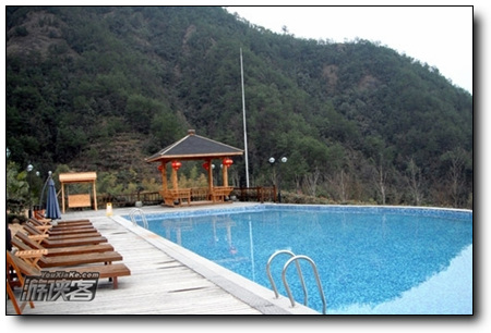 泳池后则是一座座别致的小木屋,错开而建,这就是传说中的情侣木屋了。情侣木屋共有六幢木屋,每幢木屋均为一室一厅,1.8的大床,拥有独立泡池。价格为588元/2小时,超过两小时以100元/小时计算。两小时内可免费享用醉温泉。在木屋的汤池内有另收费的加料服务,从58元/份的牛奶,到88元/份的精油都有。当然,也可享受保健按摩服务,价格同温泉会所。咨询电话,0559-2537999。