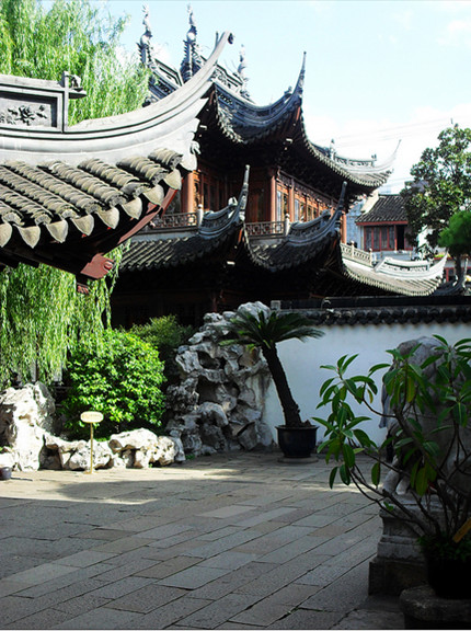 豫园始建于明嘉靖年间,原系潘氏私园。豫园始建于一五五九年,距今已有四百余年历史。它原是明朝一座私人花园,占地三十余亩.园内有穗堂、大假假山、铁狮子、快楼、得月楼、玉玲珑、积玉水廊、听涛阁、涵碧楼、内园静观大厅、古戏台等亭台楼阁以及假山、池塘等四十余处古代建筑,设计精巧、布局细腻,以清幽秀丽、玲珑剔透见长,具有小中见大的特点,体现明清两代南方园林建筑艺术的风格,是江南古典园林中的一颗明珠。