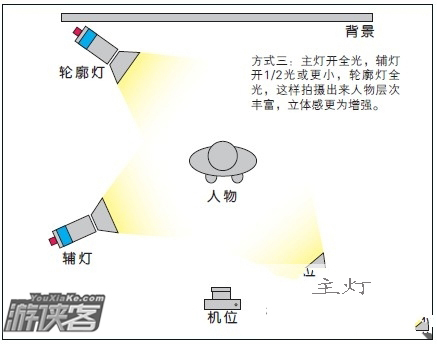 当使用2个灯时,肯定一个作为主灯,而另一个作为补光或叫辅灯。