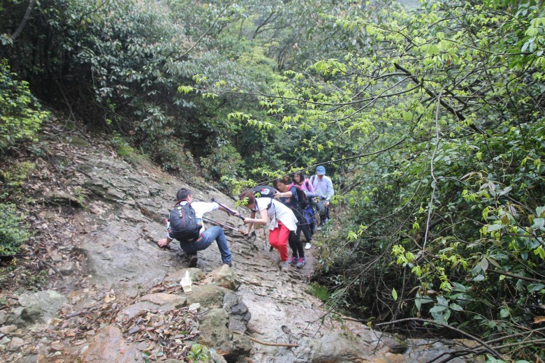 这位大哥真好,看着我们上不去,拿着登山杖拉我们上去,以后游侠们都要发扬团结互助的精神