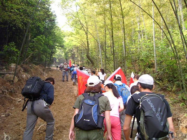 4月22日凌晨5点起来,5点40到达龙翔站.和百里溪领导和小白鼠会合,还有都市悠客的一帮朋友一起,乘514到达富阳农民城,转车南站.这次领队老雕已经带领60多人在操场上等候,分乘4辆面包车,直奔亭山,翻过山,再开始爬天钟山,到达顶峰,下来的一路风光很好,原来是风景区,需要收票的 ,大概是35元一个人.出了检票口,中饭已经准备好,吃好.就回富阳.下面稍微选一些照片,给大家看看.
