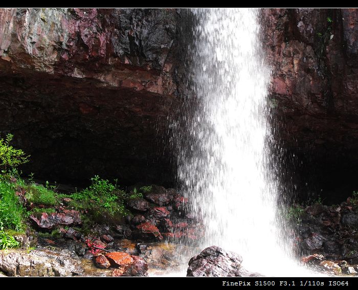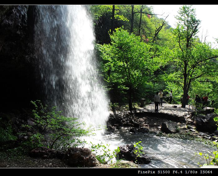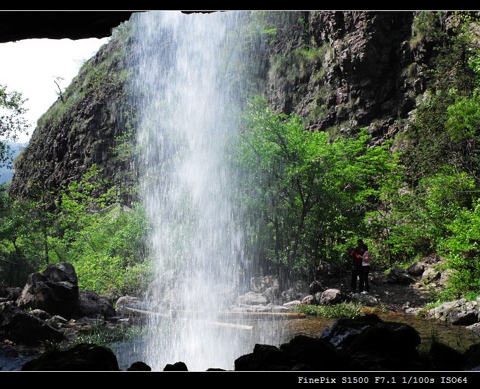 看见没,这瀑布后面有洞~~~