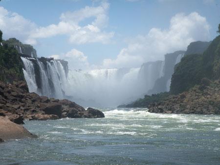 伊瓜苏大瀑布位于巴西与阿根廷边界,是南美洲最大的瀑布群,高82公尺,宽4公里,是北美洲尼加拉瀑布宽度的4倍,其壮观景象令人震惊。