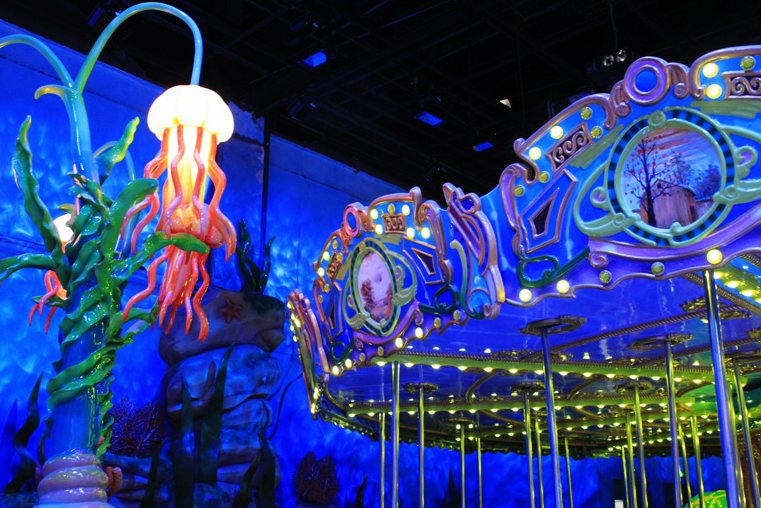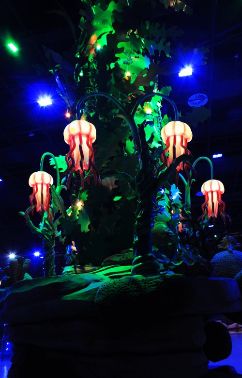 烂苹果乐园里的水母广场,拥有全世界最大水母墙。27米宽、5米高的巨型尺寸,配上顶部不断变换的LED灯光,上万只真水母,透过水晶般的墙体,游客能清晰地看到这种讨人喜欢的海洋生物一呼一吸、一伸一跳的华丽舞姿。透过水母墙,还能看到神秘的海底奇观——失落的亚特兰蒂斯在那里若隐若现。