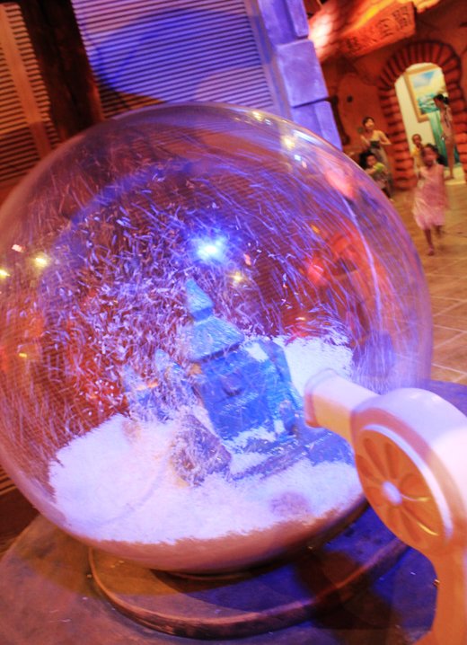 乐园里拥有许多先进的4D体验项目。当你走进深海广场,就像置身在1万米下的海底,丑鱼尼莫会在你头上游来游去,吞吐出长长的气泡和做出古灵精怪的表情;各种缤纷可爱及面目狰狞的海洋生物也会突然在你眼皮底下蹦跶扑腾,你甚至可以感觉到头发丝被海水冲拂的清凉和用手抚摸的乐趣。