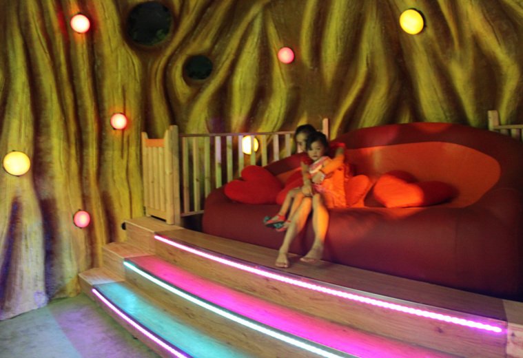 以前的游乐园,要么惊险刺激,只有大人才能玩。要么童真幼稚,大人只能看着小孩玩。而在烂苹果乐园里,集合了动漫、童话、魔幻等多种元素,大人和小孩都可以一起玩,非常适合亲子活动。