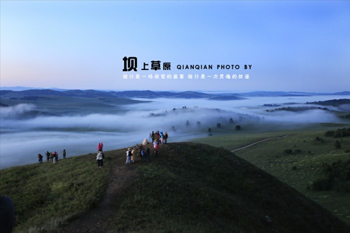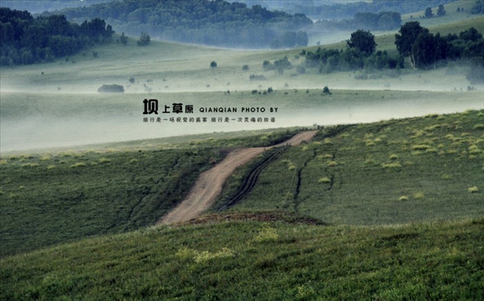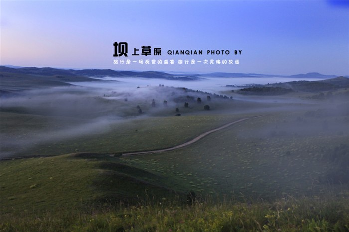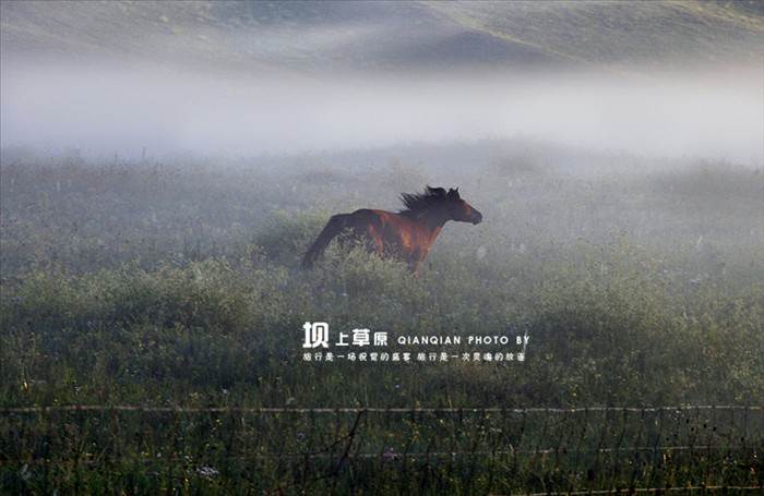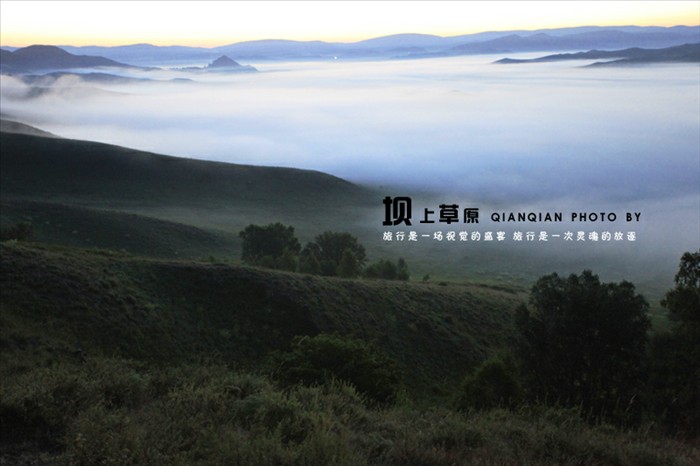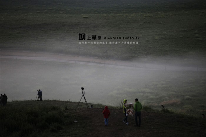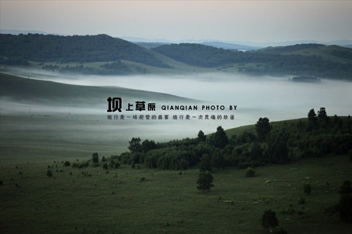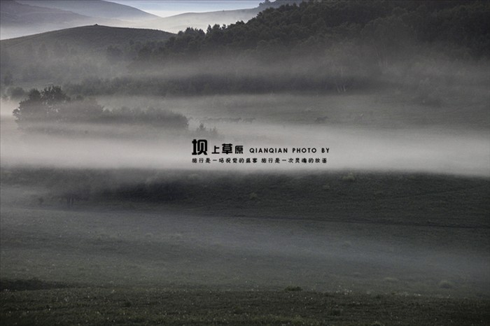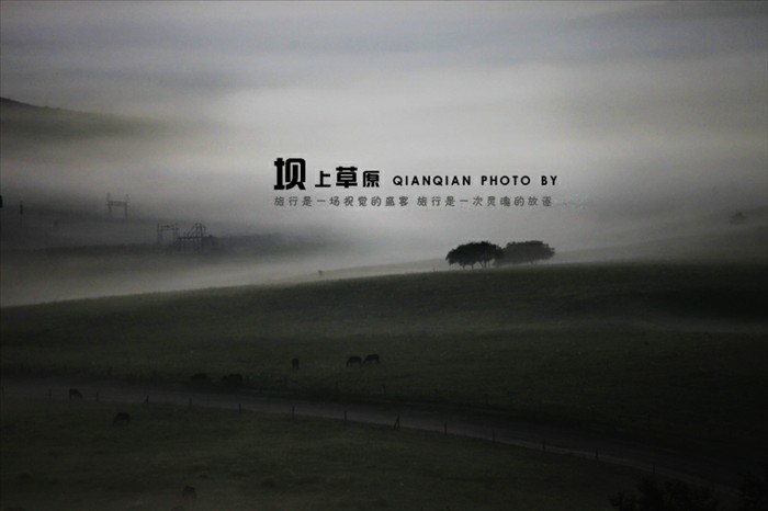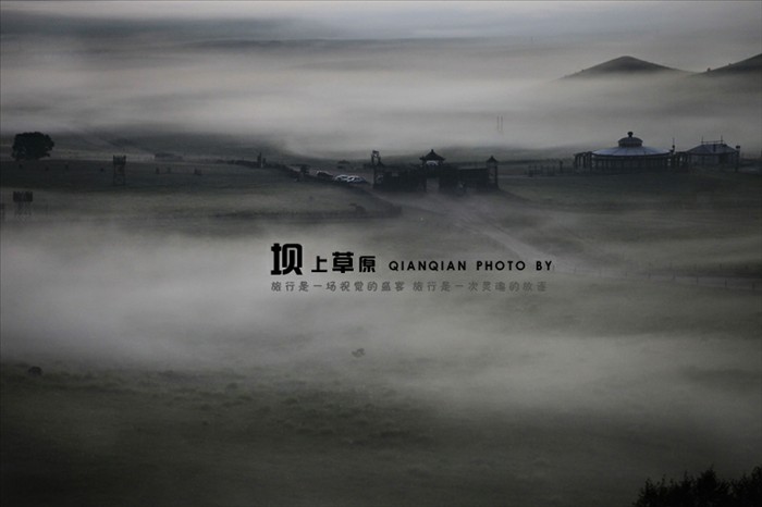 草原的景色每一刻都不同,云山雾罩的时候,天海没有透亮,好几处都是水墨淡彩的天然