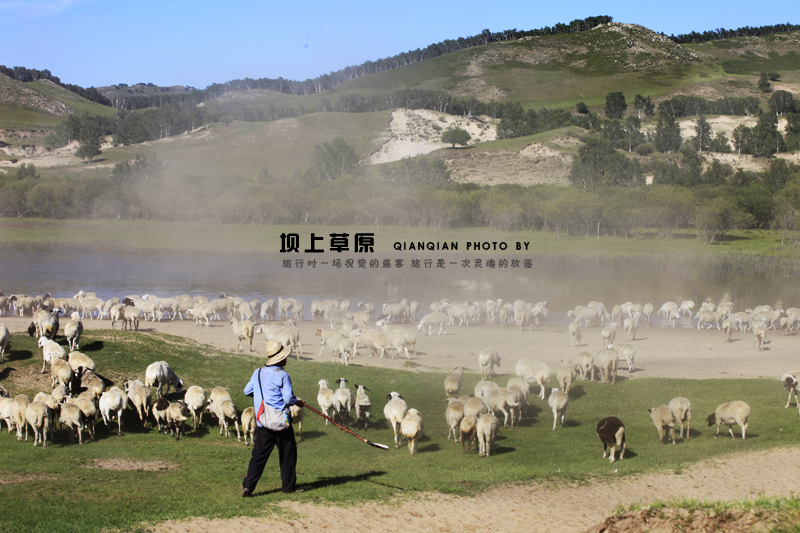 草原的天空几乎贴着草地的感觉,一望无垠的绿一路绵延,马牛羊是草地的点缀,都在它的怀抱里变得渺小,这天的下午是大家玩的最高兴的吧,滑沙,可是很遗憾,因为自己的马大哈,以为丢了东西,没有心情去玩了,还连累了领队和司机,为我跑回酒店寻找,听说有人鞋子都玩丢了,所以尽管儿子去玩了,我也没心情拍照片了,夕阳下的景色是非常美非常美的,也只匆匆的拍了几张,所以旅行时大意不得,贵重物品一定要随身带好,以免给自己和他人带来麻烦。自己也愧疚的要死。人背的时候喝水都会呛啊,马上摔下来也是我,弄丢表的也是我,骑马的时候最好不要佩戴饰品,那个身份证以为丢了居然最后夹在了户口本破掉的夹层纸板里,好像是故意恶作剧的一般,还有,草原上是没有银行的,习惯带卡的人一定要注意,如果要准备在草原上买东西的还是要多备一些钱。