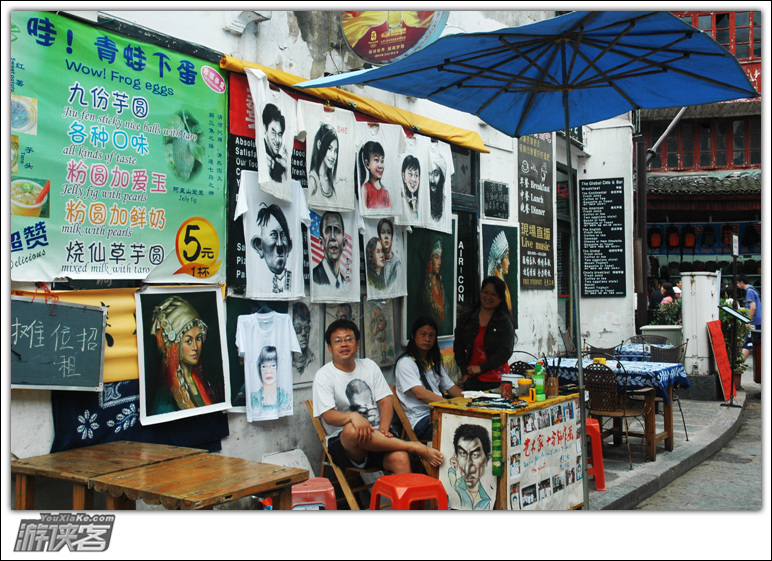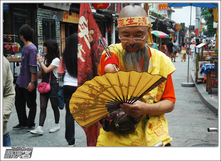 这位打着骑行中国的独臂老兄值得尊敬,他靠卖独臂写生扇为生,虽然这两天我老是看他在西街转,但生活的压力和生命的尊严哪个重要?