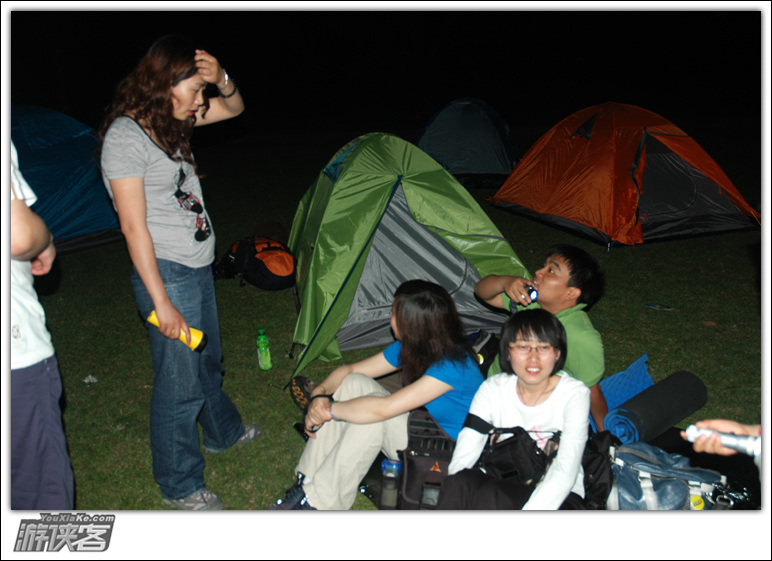 晚上我们在兴坪古镇河边露营,这里是我们的营地,很好的草坪。我们一半人露营,一半人住宿