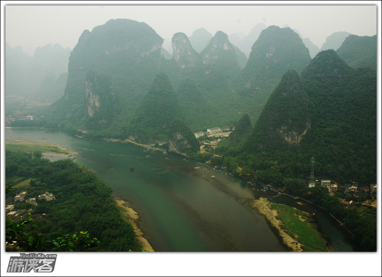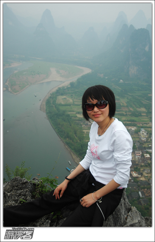 老寨山顶看漓江,可惜,天空灰了点。这里真是殉情的好地方啊,哈哈
