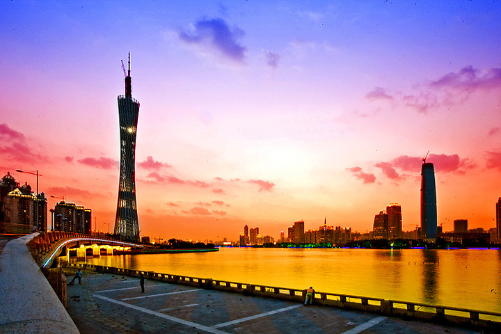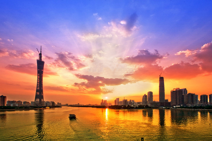 的天气格外睛朗,约上一班影友走上猎德大桥,用广角拍下夕阳照耀的珠江!
