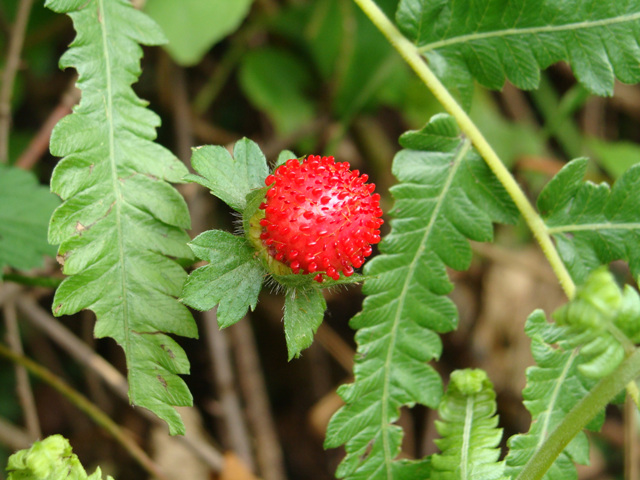 野草莓在峡谷一直寻觅不到,只能用稀见来形容了...别看错了下图是"蛇莓"哦,切不可以食用.