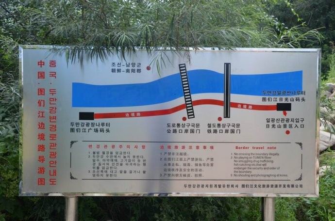 每隔100米就会有一个碉堡,上面有战士在站岗,据说主要是防止自己朝鲜人跑过来,因为这边人基本不会偷渡过去吧。(去图们口岸的路上被边防拦下来查证件,好像一个人从朝鲜那边跑过来了。)