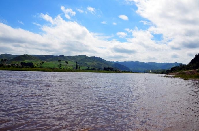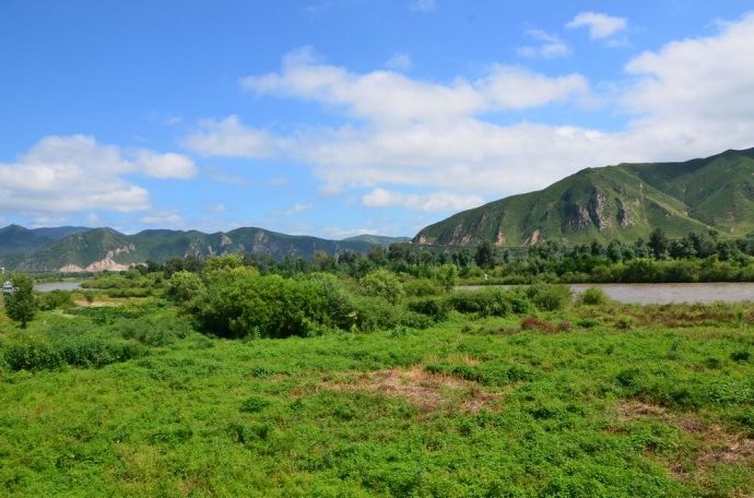 来到图们江边,由于天气晴朗,蓝天白云加上树林茂密,所以感觉景色很美!边防战士对在江边停下来的汽车进行严格登记,并要求我们只能看,不允许喊话以及拍照。大家饶有兴致地跟他多聊聊,聊开了就不是那么“严格”了,允许我们用相机的镜头拉近看看,“顺便”我也拍了两张,呵呵!