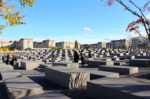 建筑碑群占地1.9万平方米,由2711块石碑组成。地点在柏林市中心标志建筑物勃兰登堡门附近,联邦议院和联邦总理府也近在咫尺。建筑物的投资达到2800万欧元,全部由德国联邦政府负担。组成建筑物的石碑最高的达4.7米,最低的不到半米。从高处远远望去,高高低低的石碑象波浪一样整齐地起伏着。