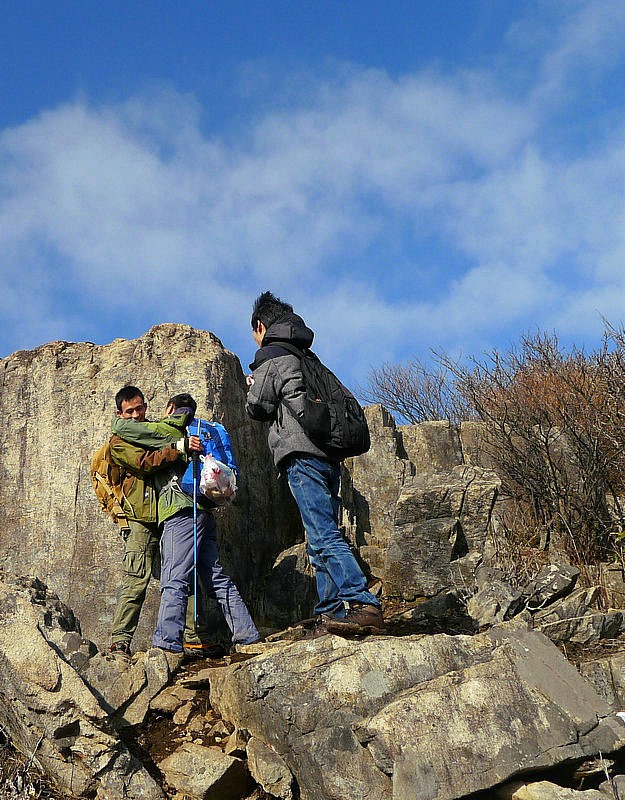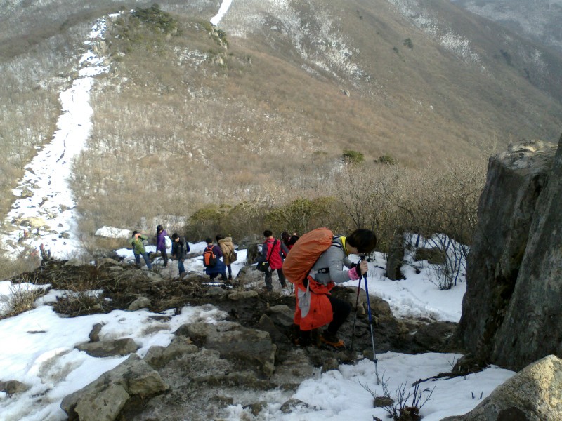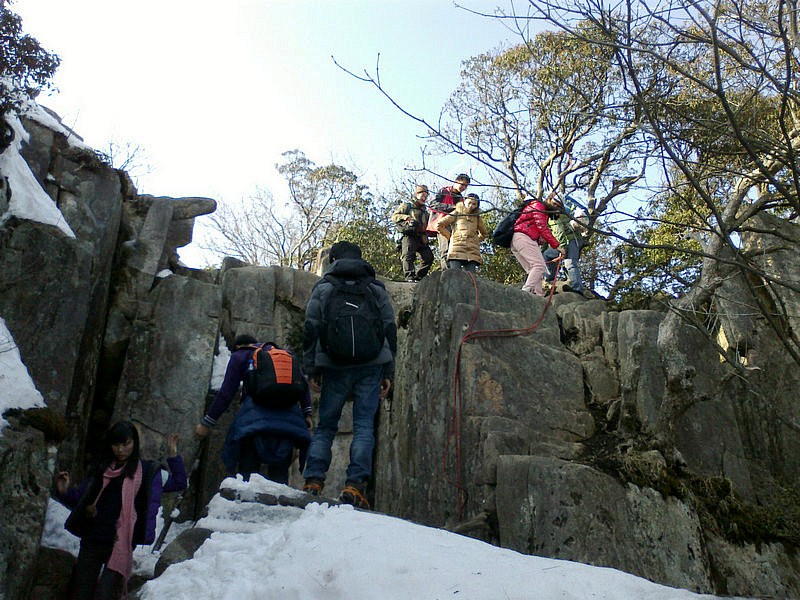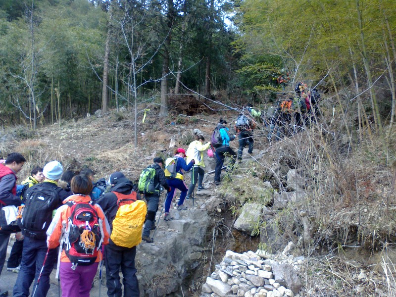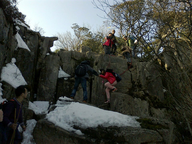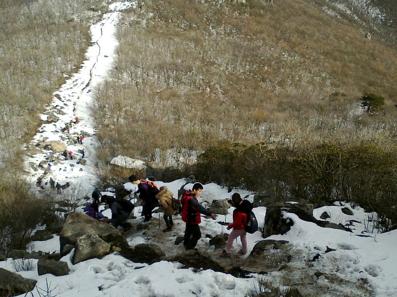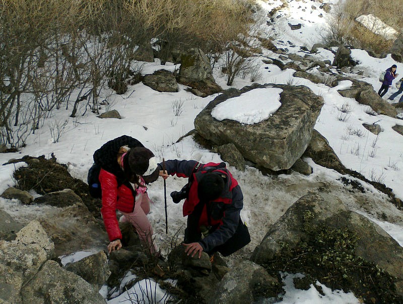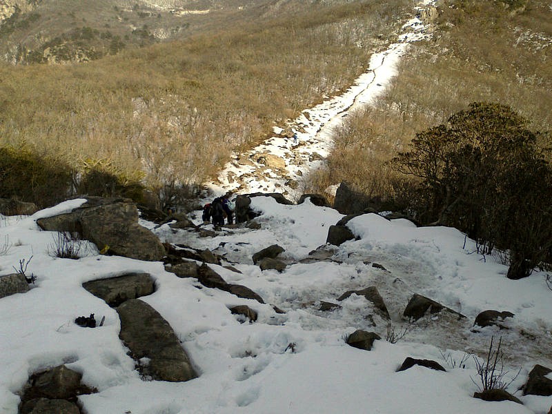 下山的路很难走,大家互相照应着