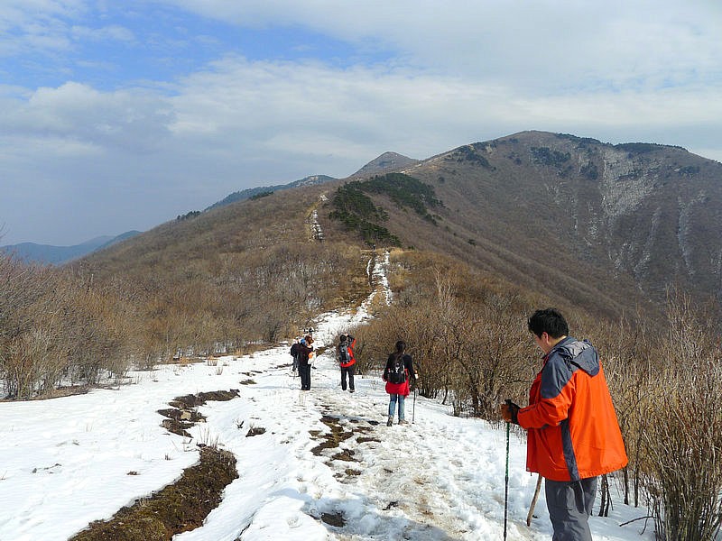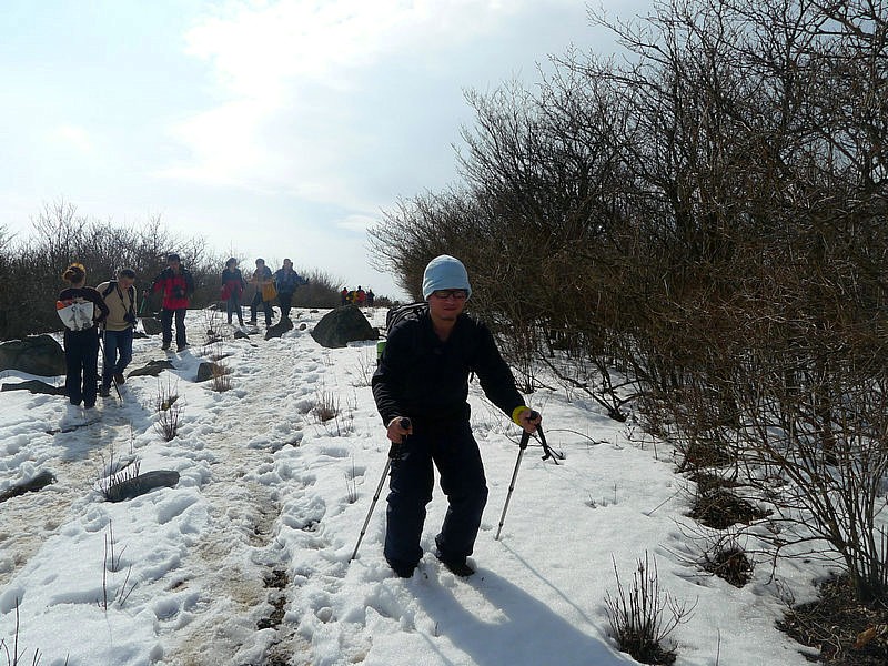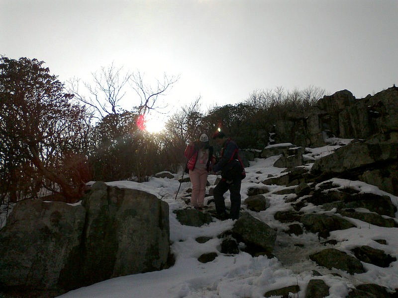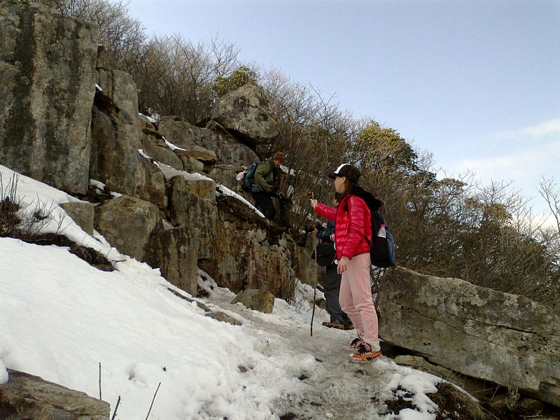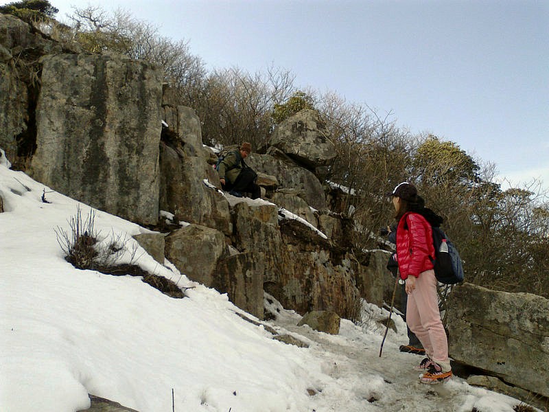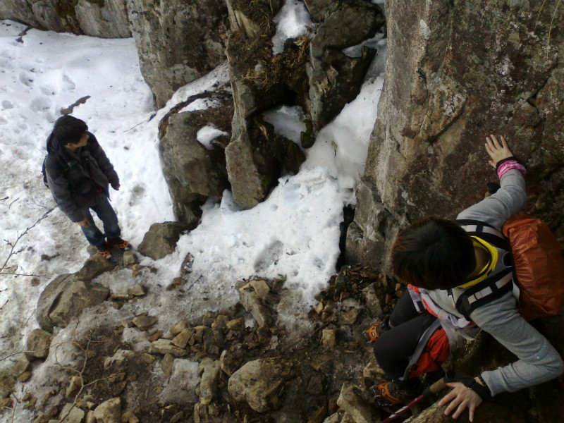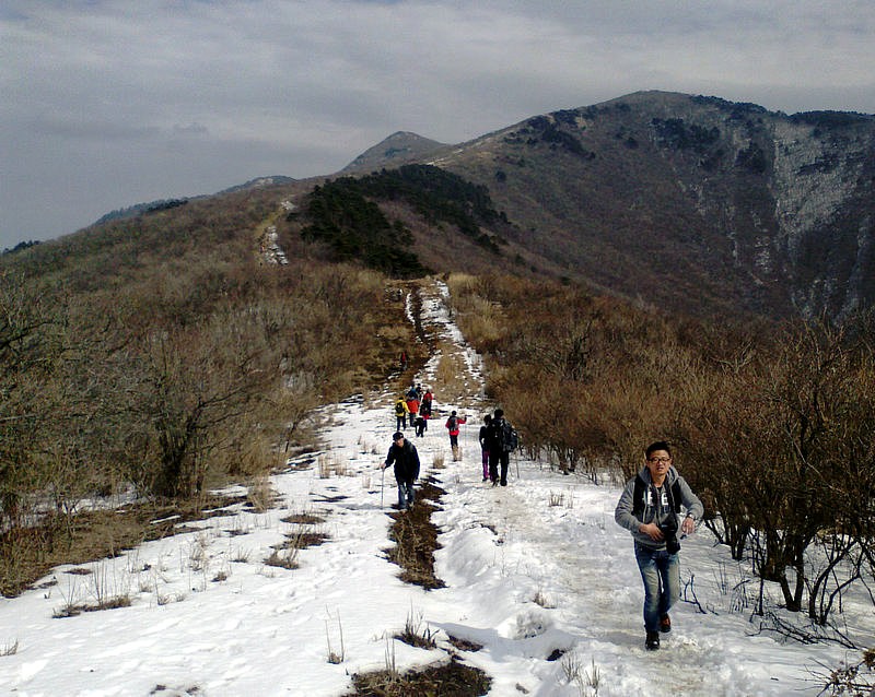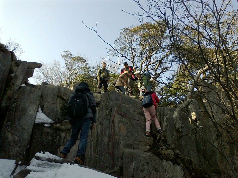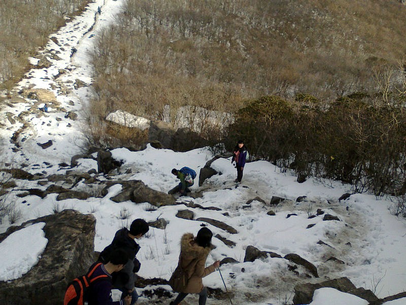 下山的路很难走,大家互相照应着
