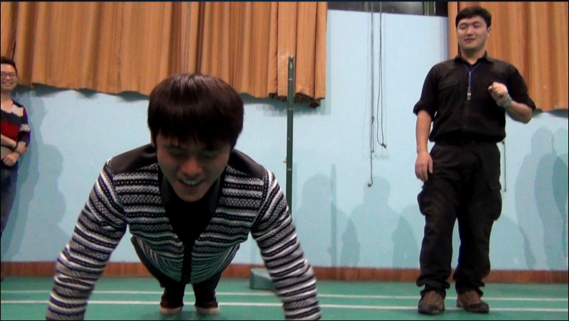 一开始大家还处于懒散的状态之中,在教练的严厉气势之下,个个变得训练有素。