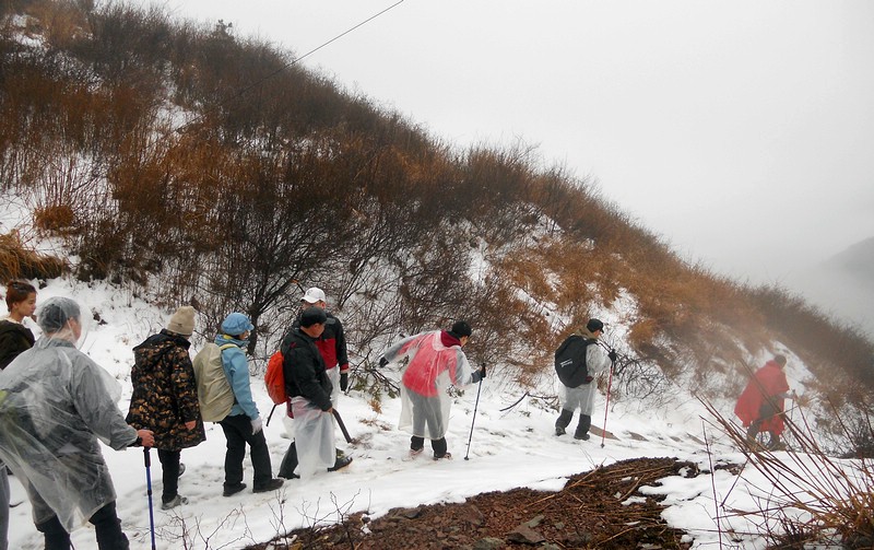 雾凇冰挂就甭想了,积雪已融化,土路泥泞,石路湿滑,众游侠纷纷摔跤“捡元宝”,