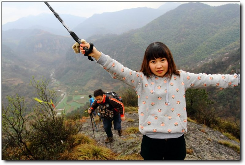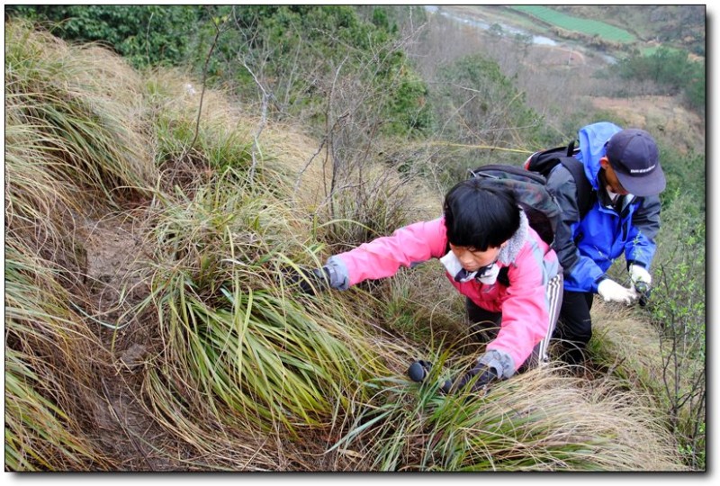 上山的路很陡,大家只能贴着岩石向上爬。
