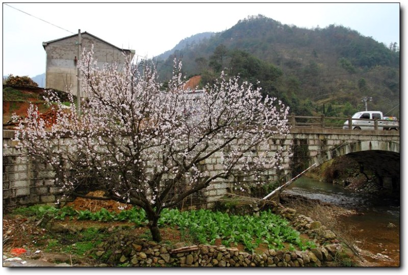闲着没事,就到当地的农家乐吃了一碗炒年糕,味道真是好。完了在村口转了个圈,拍了这棵梅花和那座石桥。