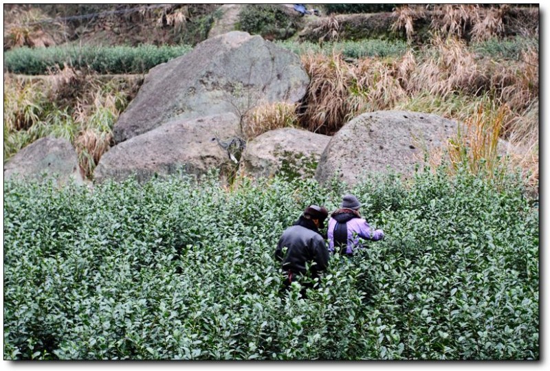 下到谷底之后,沿小溪往回走,一路都可以看到茶农已经开始在采摘了。