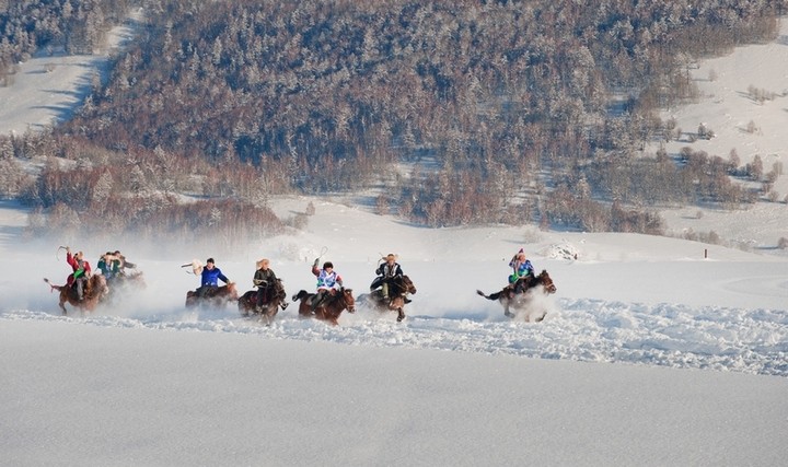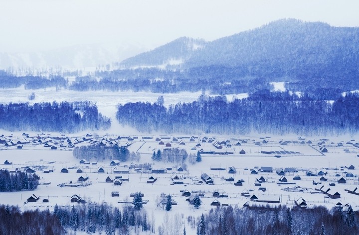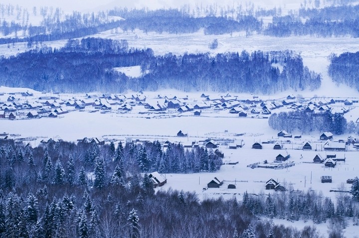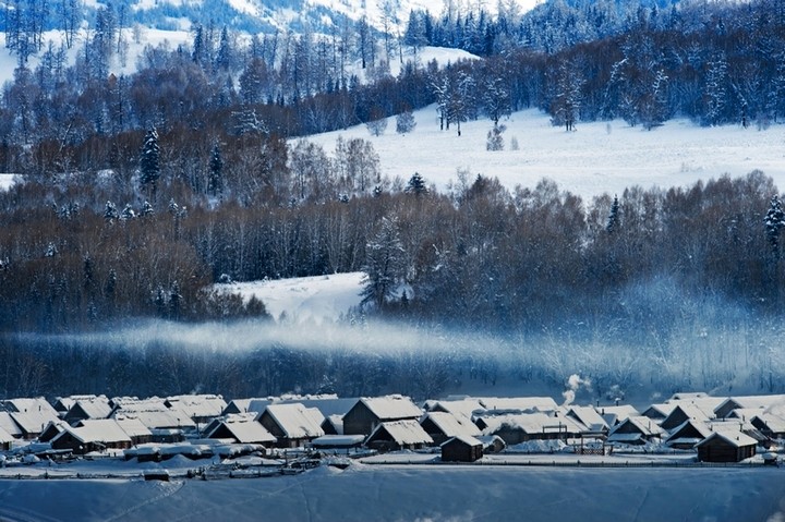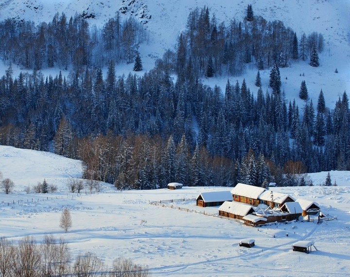 一下便是禾木草原的冬景,开阔景色令人叹为观止。