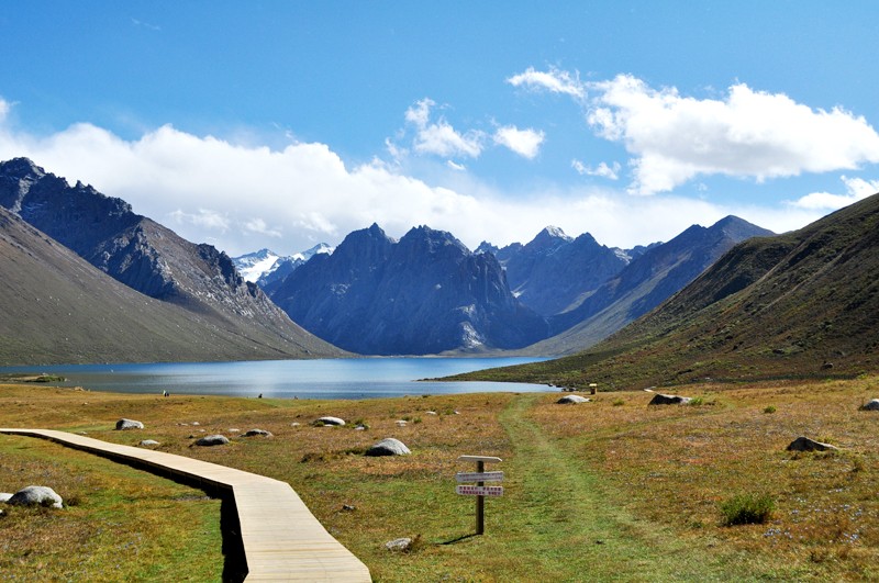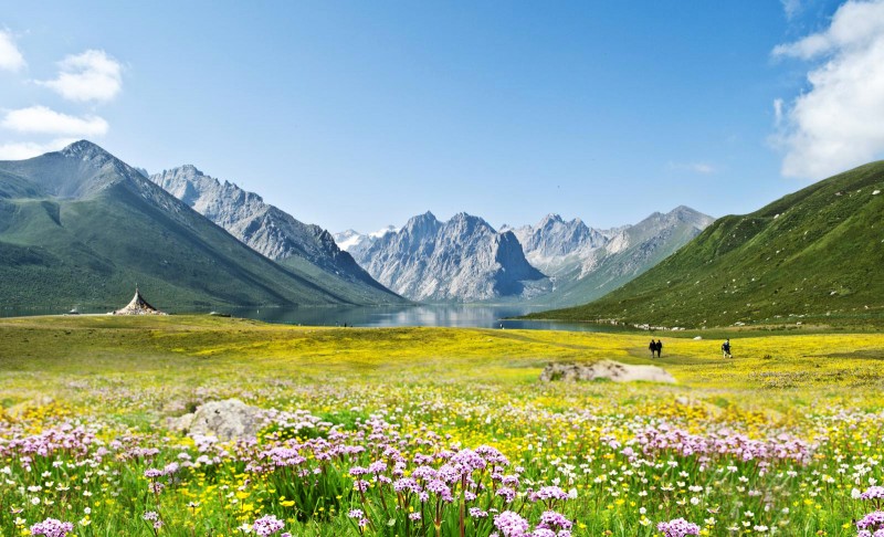 这个地区处在亚热带季风高原高峰气候区域的边缘,山麓中生长着千百年的云杉、松柏,成林蔽野,古木参天。山坡上有虫草、贝母、大黄等名贵药材。山脚下,野驴、野牦牛、藏羚羊、岩羊、白唇鹿、黑熊等珍贵动物,成群出没于森林草原之中。湖内,有高原上特有的鱼类20多种。可以说,人们一到这里就会感到真正回到了大自然之中。