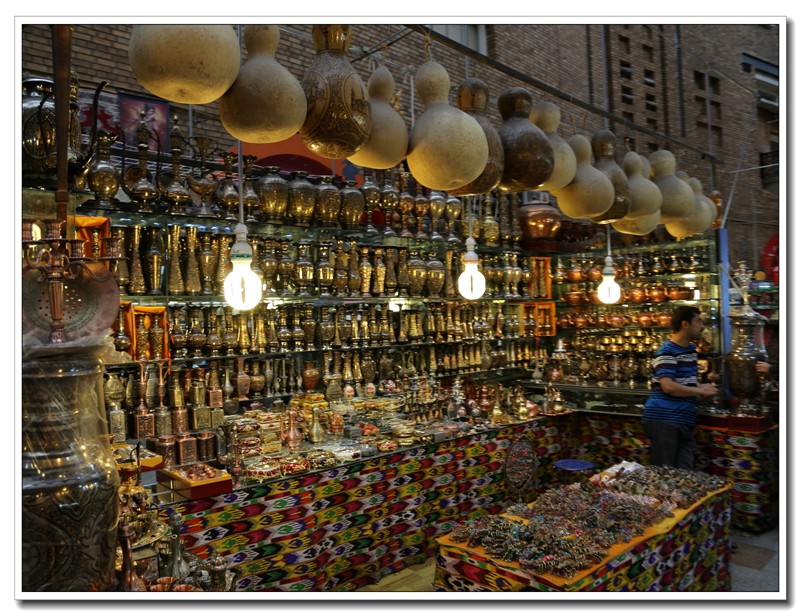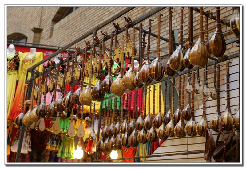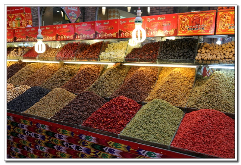 大巴扎到处都散发出浓浓的异域风情,虽然没有出国,却像到了国外。这里的人、这里的商品都跟我们内地不一样,各种各样的葡萄干,各种各样的工艺品,很多都叫不出名字,还有我最中意的各种款式的英吉沙小刀。十年之前到过乌鲁木齐,就曾买了一把,至今还放在家里留念。不过大巴扎的商品似乎不便宜,在路边喝了一杯红红的石榴汁,居然要15元,而且那东西,奇酸无比,每喝一口都酸得让你眉头紧绷,世上还有这么难喝的果汁啊,亏大了。