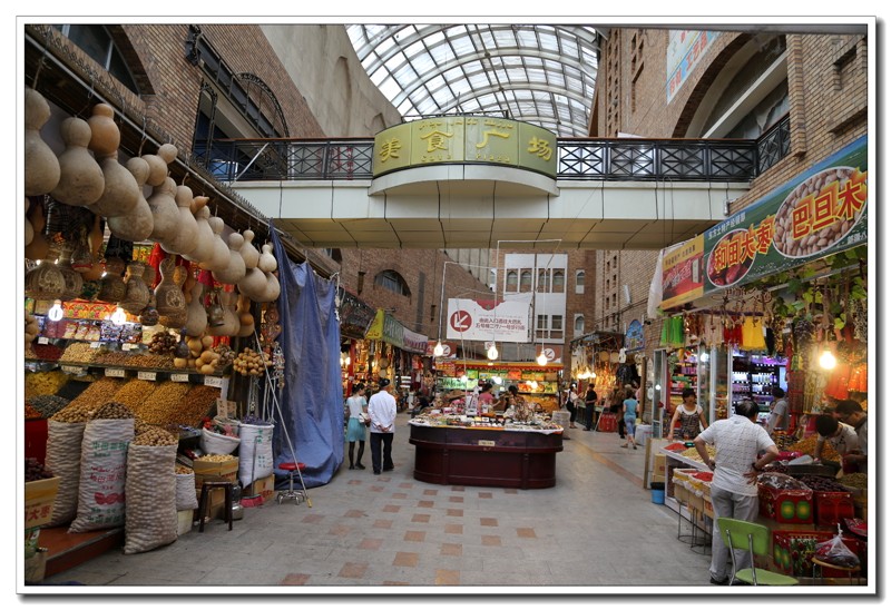 乌鲁木齐跟北京有两个小时的时差,起码晚上10点半后才会天黑,因此到新疆旅游最大的优势就是玩的时间特别多。从天池赶到乌鲁木齐的二道桥国际大巴扎,才六点左右,时间还早得很。